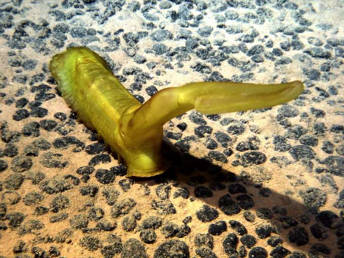 Psychropotes semperiana auf Manganknollen.